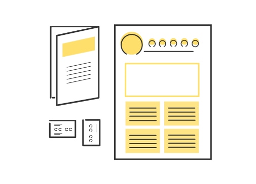 会社の設立に必要なロゴや名刺・封筒・会社案内・パンフレット等の様々な印刷物をワンストップで提供することで、短期間でデザインの統一された印刷物をご提供することができます。